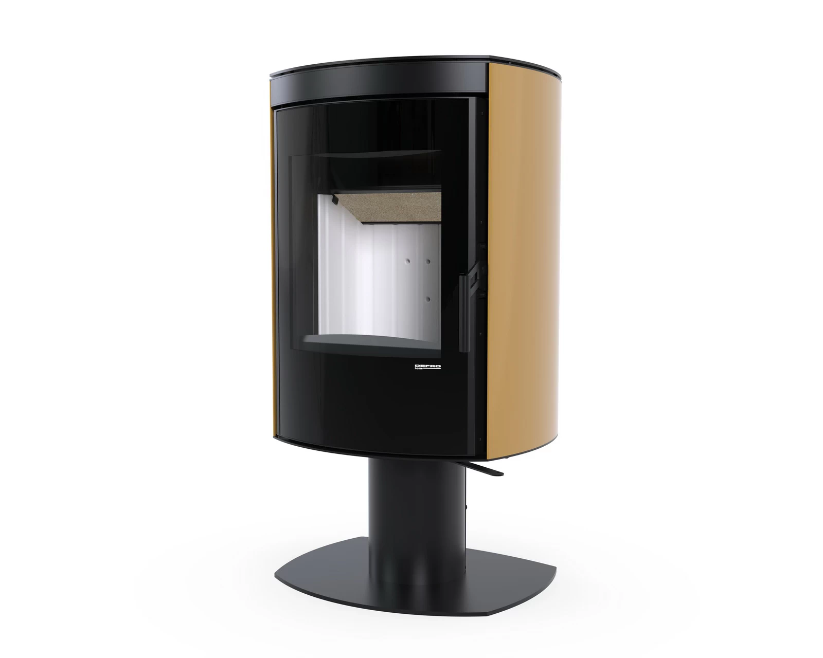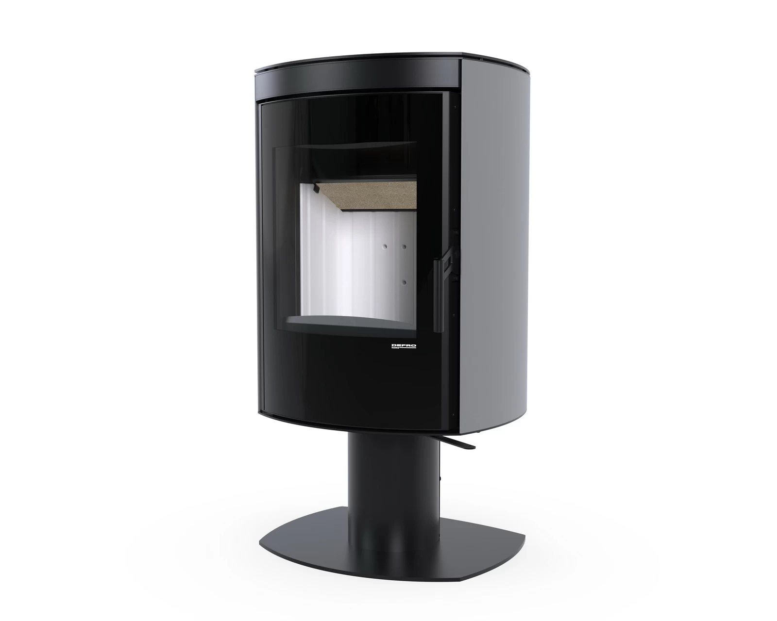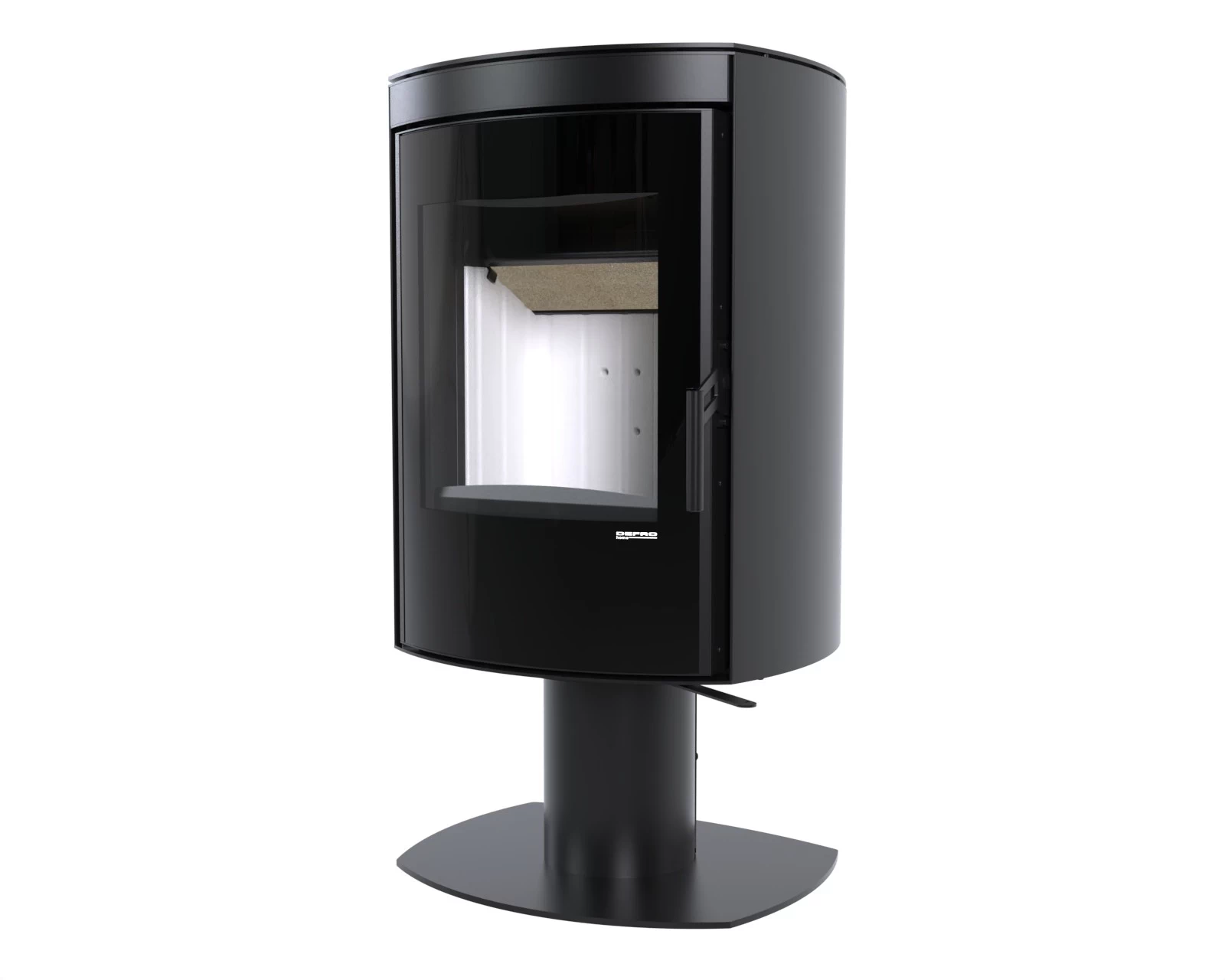 Cylindryczna forma oraz duża szyba frontowa tworzą efektowny widok ognia i doskonale komponują się z nowoczesnymi aranżacjami wnętrz.