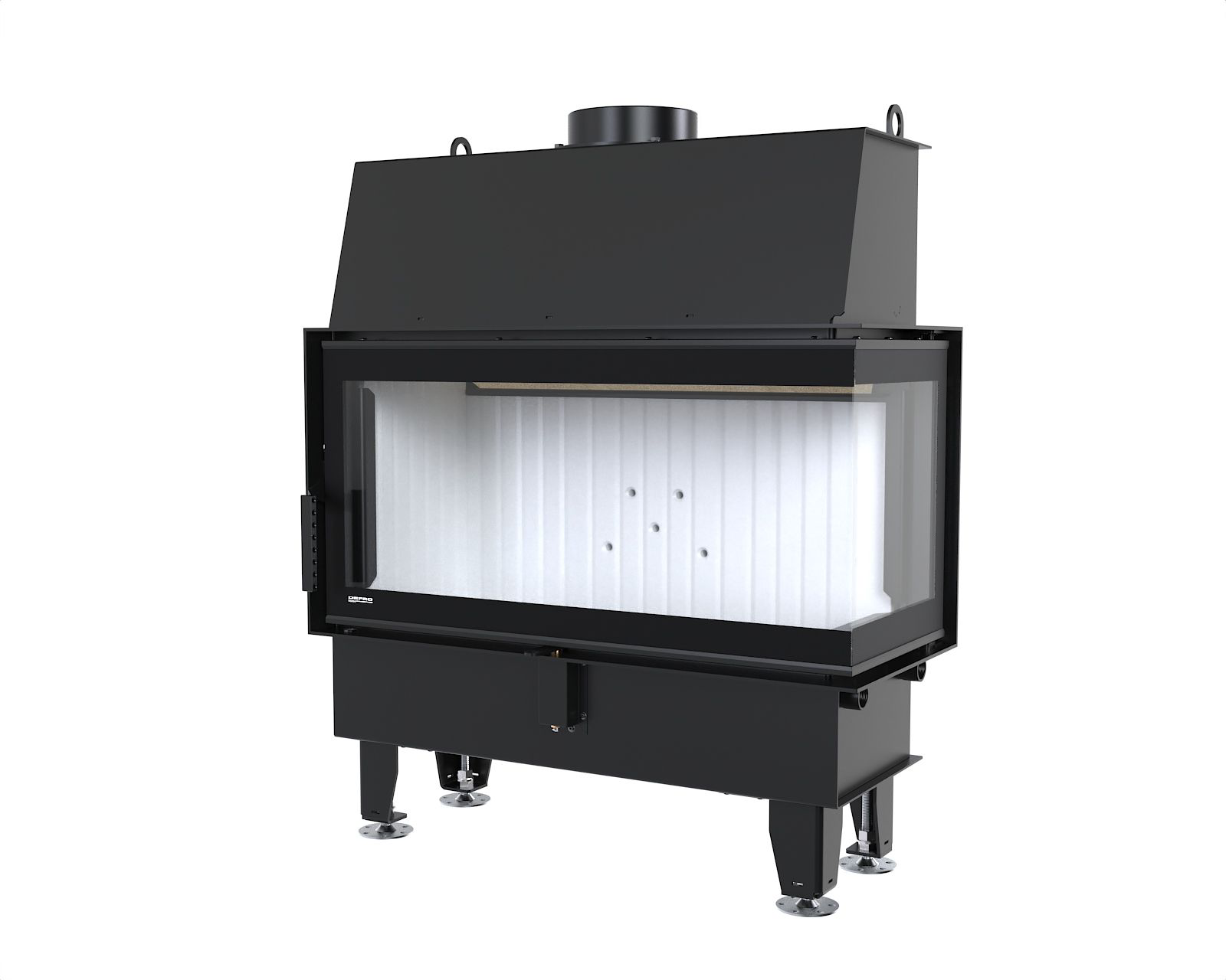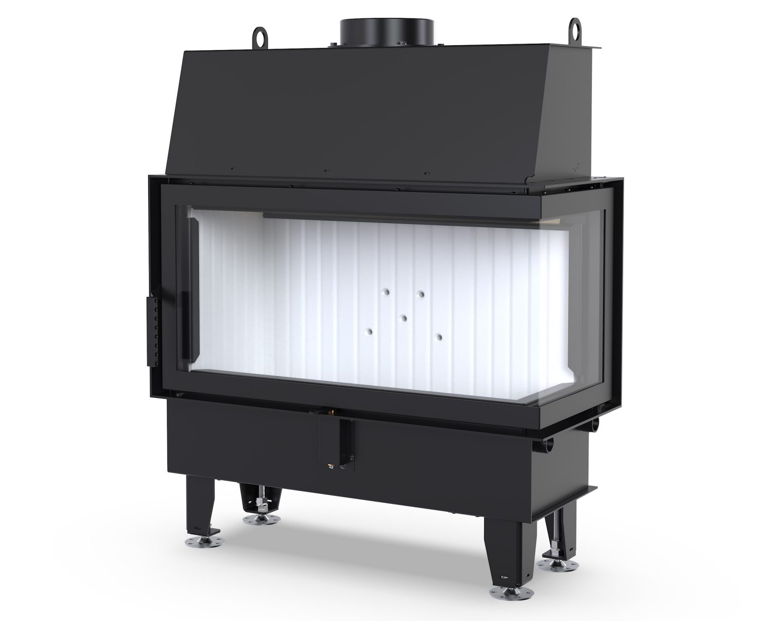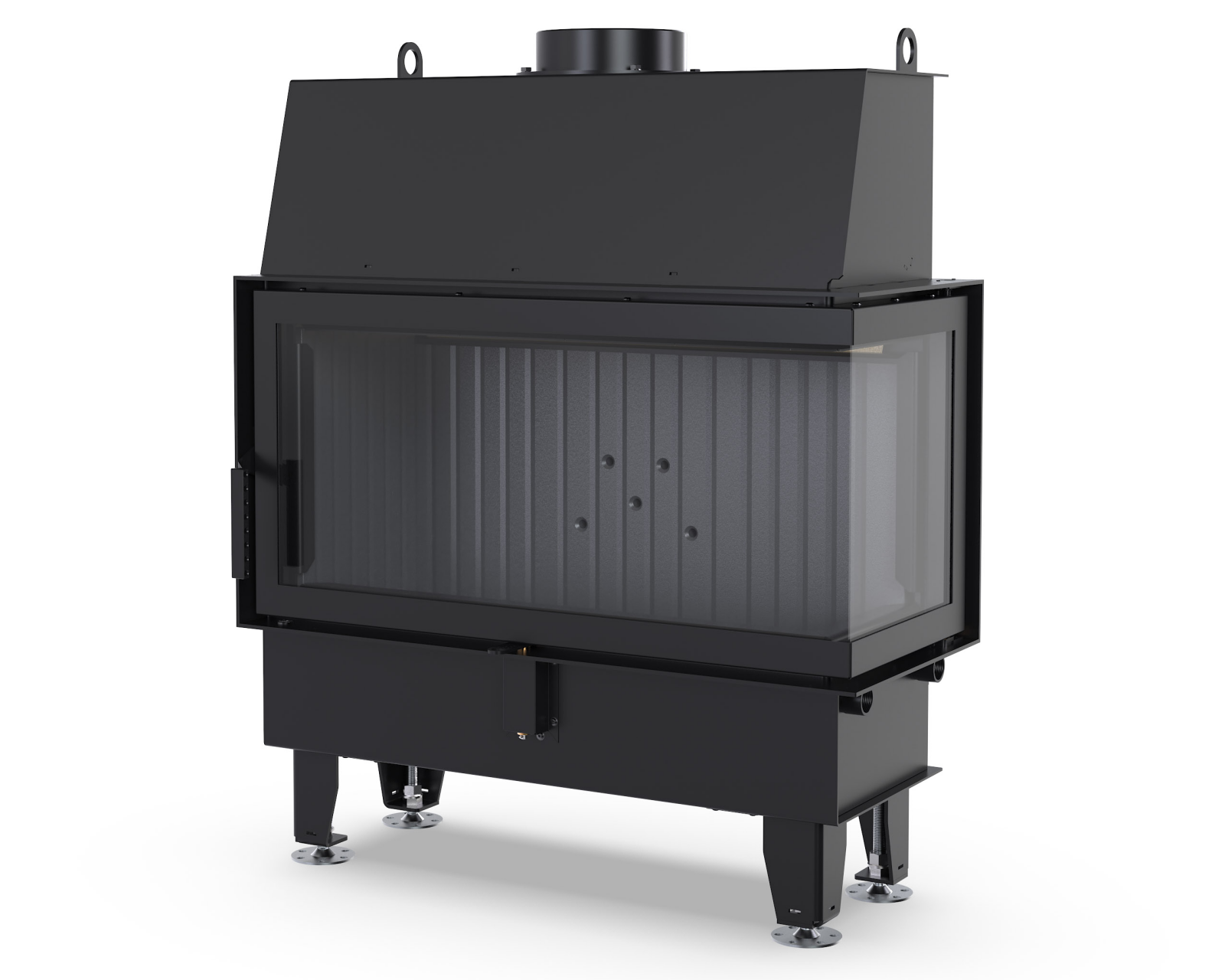 Połączenie bardzo dużej szyby frontowej z bocznym, prawym przeszkleniem gwarantuje maksymalną widoczność paleniska i spektakularny efekt wizualny ognia.