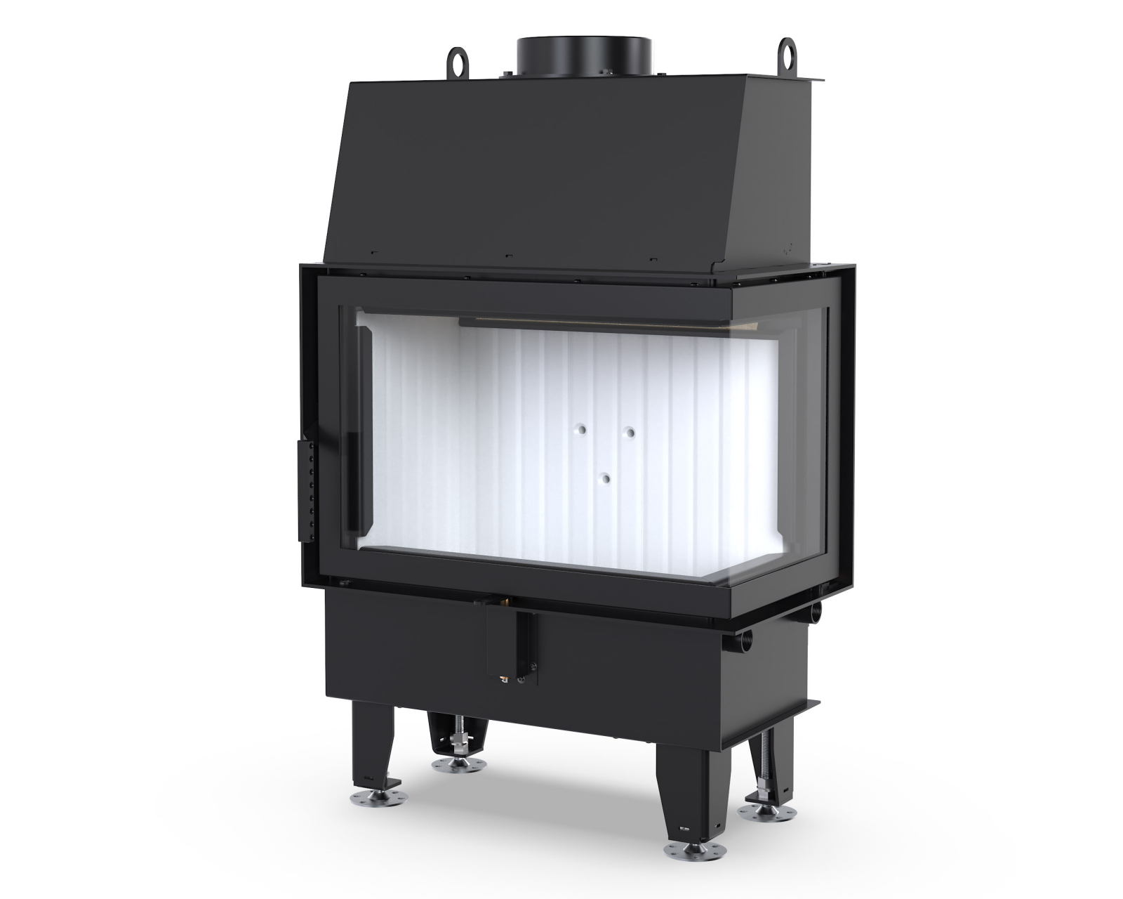 Boczna prawa szyba umożliwia atrakcyjną ekspozycję ognia z kilku perspektyw.