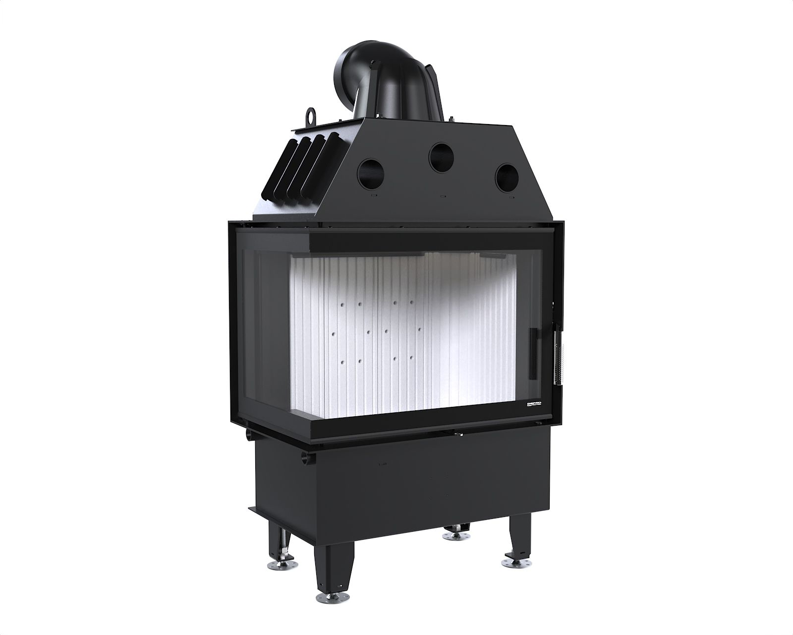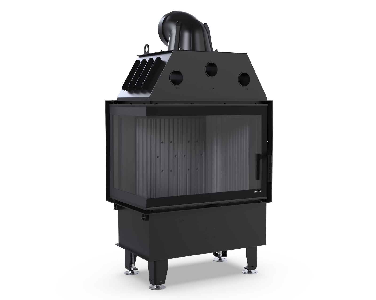 Dodatkowe boczne przeszklenie po lewej stronie umożliwia lepszą widoczność paleniska w narożnych zabudowach, bez dominującego efektu wizualnego typowego dla serii Impuls.