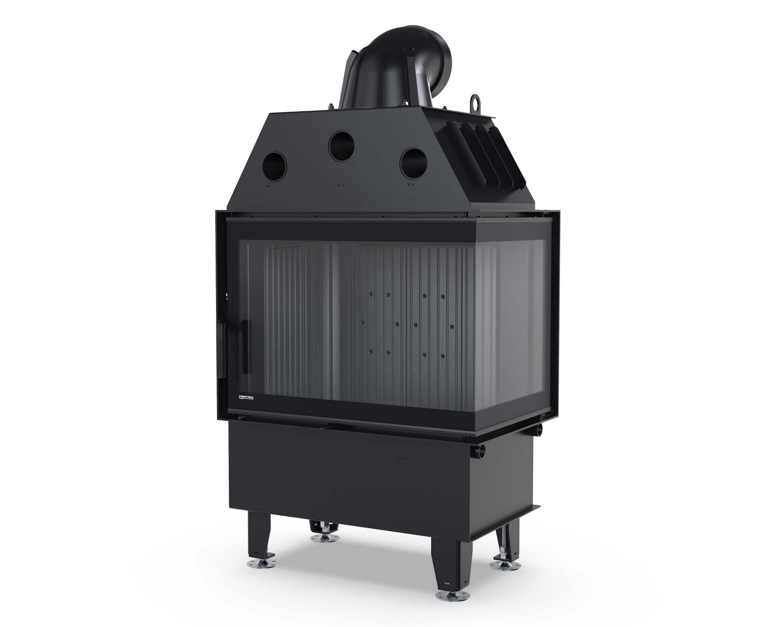 Dodatkowe boczne przeszklenie po prawej stronie umożliwia lepszą widoczność paleniska w narożnych zabudowach, bez dominującego efektu wizualnego typowego dla serii Impuls.