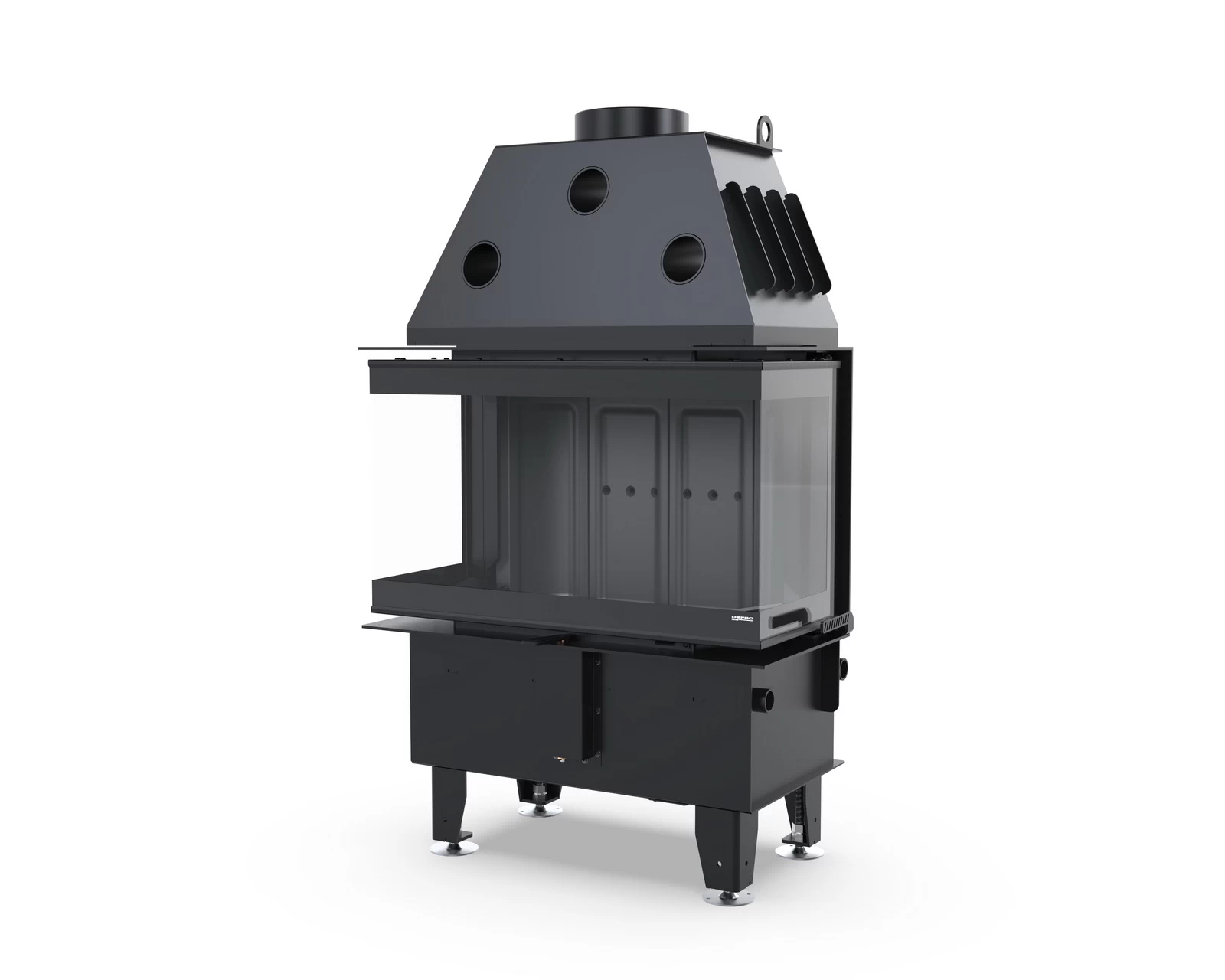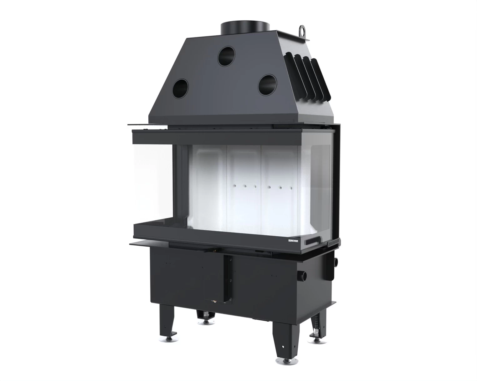 Defro Home Intra S C wyposażony jest w trzy szyby, które zapewniają widok ognia z przodu oraz z obu boków. W przeciwieństwie do wariantów BL i BP, wersja C oferuje pełną panoramiczną ekspozycję paleniska, idealną do centralnych i przeszklonych zabudów, przy zachowaniu klasycznego, funkcjonalnego charakteru serii Intra.