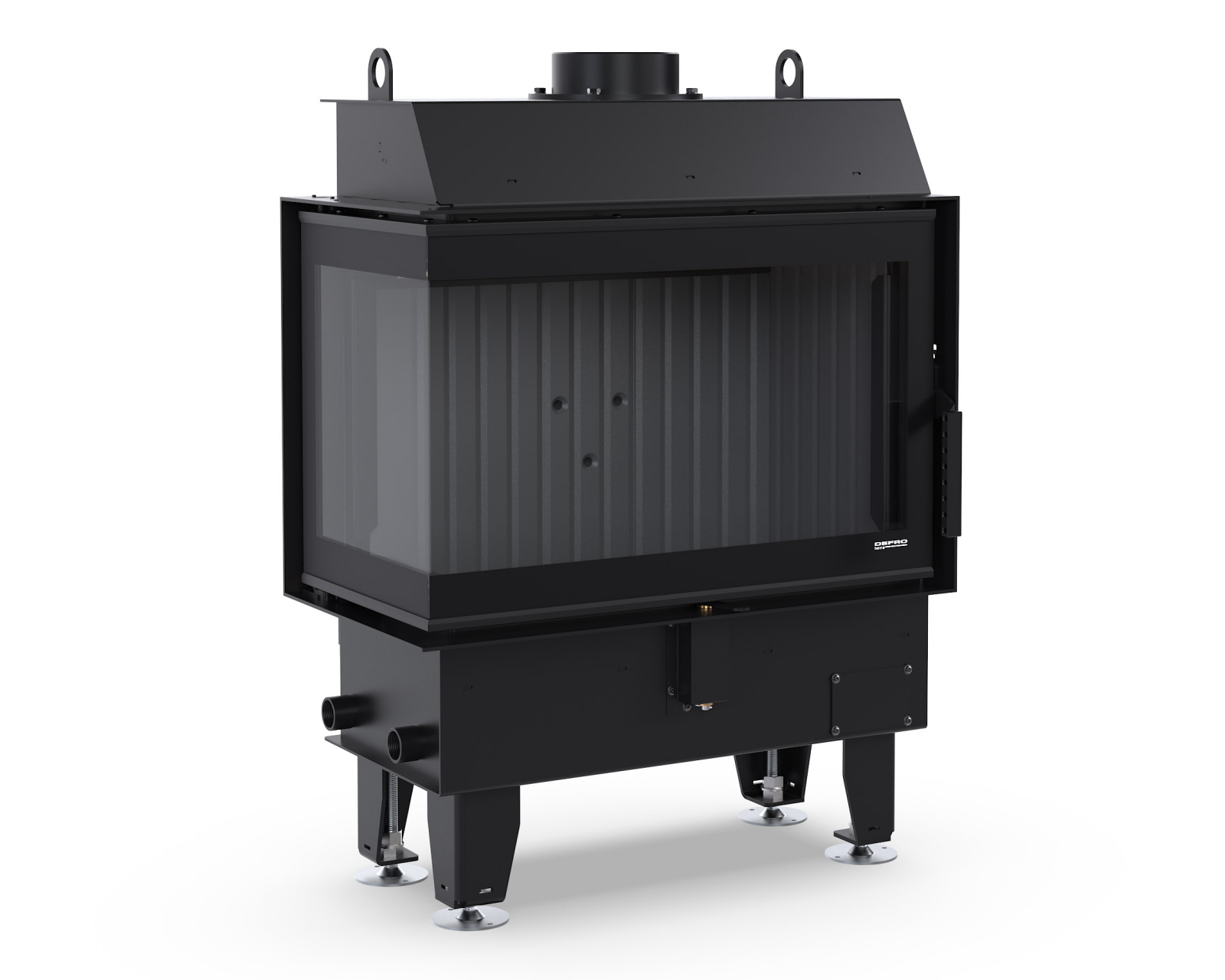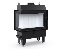 Dodatkowe boczne przeszklenie po lewej stronie zwiększa widoczność paleniska i pozwala lepiej wyeksponować ogień w narożnych oraz nowoczesnych aranżacjach wnętrz.